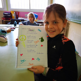 Continuamos trabajando en el proyecto, esta vez hemos creado un poema en inglés sobre las guerras. Los alumnos han podido expresar su sentimiento de rechazo hacia estas situaciones y las emociones que se desprenden.