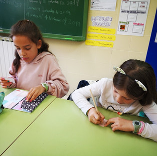 Los estudiantes están preparando cartas y manualidades para entregar a las otras escuelas. En las cartas se presentan y explican cómo es su alrededor.